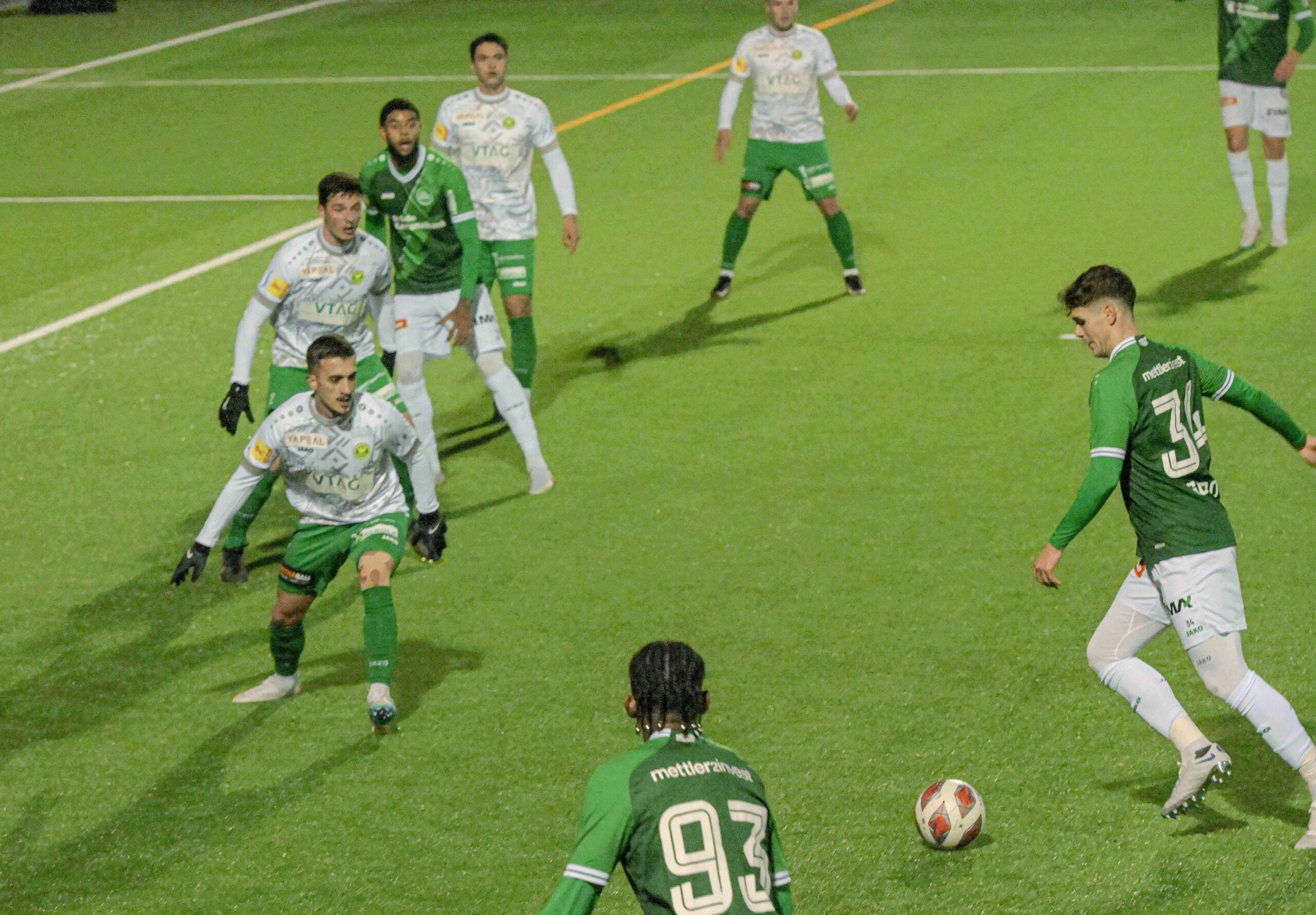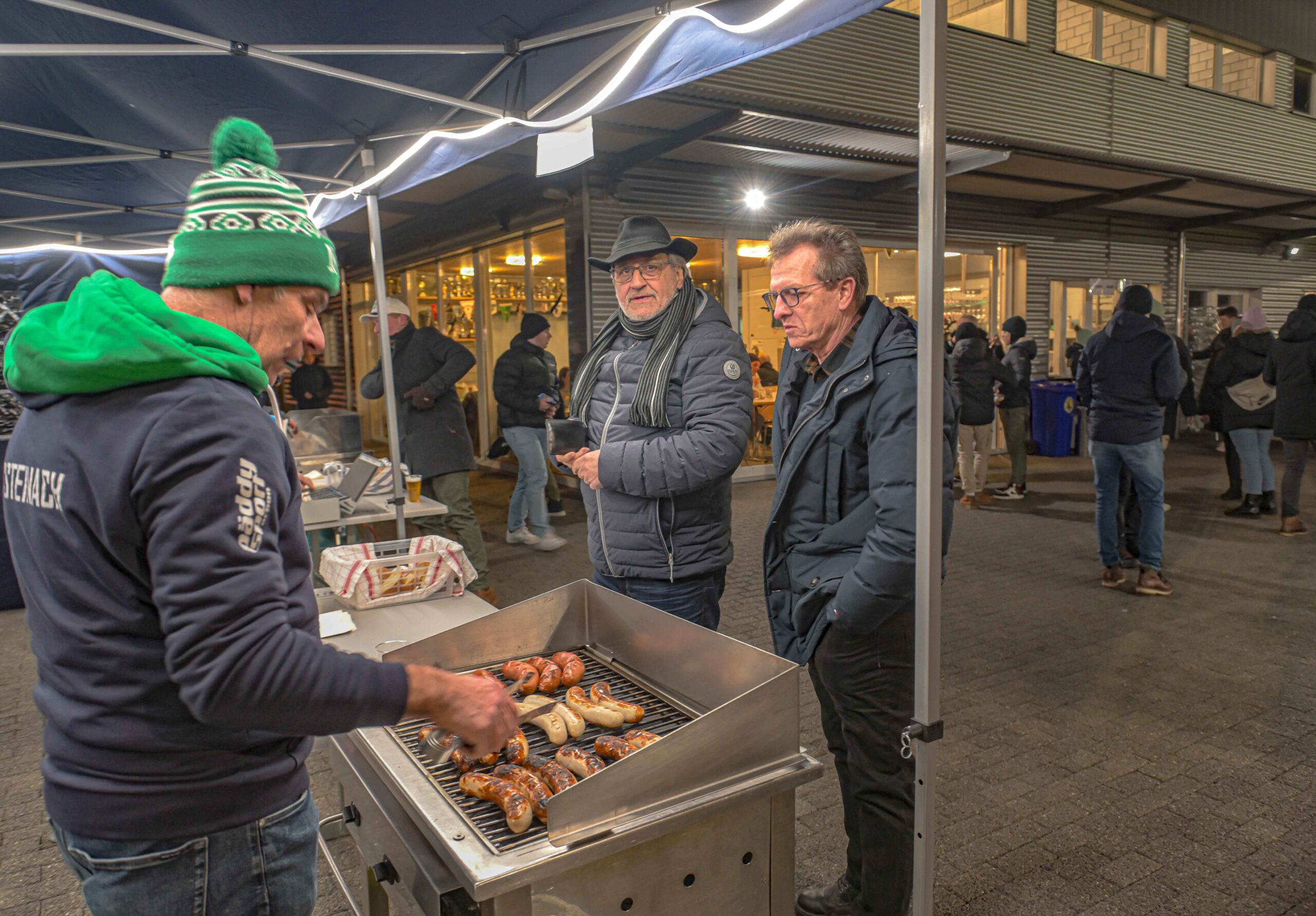 Die Organisatoren vom FC Steinach hatten am besuchermässigen Erfolg lange Zweifel gehegt, war doch das Spiel sehr kurzfristig angesagt und zur Winterzeit eine eher kalte Angelegenheit. Angeregt wurde die Partie vom FC St.Gallen, der im Hinblick auf das Spiel vom kommenden Wochenende gegen die Young Boys, das auf Kunstrasen ausgetragen wird, noch eine Trainingseinheit spielen wollte. Trotz den winterlichen Wetterbedingungen, kalt aber trocken, liessen es sich die Fans des FC St.Gallen nicht nehmen, ihre Mannschaft in einem etwas familiäreren Rahmen bewundern und erleben zu können. Rund 700 Fussballinteressierte jeglichen Alters konnte der FC Steinach auf dem Sportplatz Bleiche willkommen heissen. Die Organisatoren hatten es sich vorgenommen, vorrangig für genügend Essen und Trinken besorgt zu sein. Was die Bratwürste betrifft, musste nachgeliefert werden und beim Bier sieht die Bilanz, trotz eisiger Kälte, mit dem Verbrauch von 140 Litern ebenfalls gut aus. Für Wolfgang Steiger, Präsident des FC Steinach, bedeutet der Abend eine mit Erfolg geschlagene Schlacht. Bereits am Nachmittag um 17 Uhr war er im Bleiche-Areal anzutreffen, stets darauf bedacht, dass alles wie am Schnürchen laufen wird. Bei der nachträglichen Bilanz zeigt er sich hocherfreute über den Verlauf des Abends. „Der Besucheraufmarsch war toll und das Spiel ist friedlich verlaufen“, bestätigte er. (Text und Bilder: Fritz Heinze)