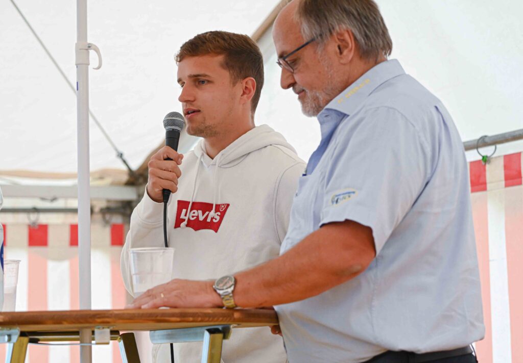 Kurt Köppel fiel die Ehre zu, den ehemaligen FC Steinach-Spieler Cédric Gasser, der aktuell beim Challenge League-Verein FC Vaduz spielt, zu interviewen. Eine interessante Zuhörerschaft war ihm gewiss. Denn wenn die Wurzeln in Steinach sind und der Weg in doch rechte Höhen geführt hat, kann man die Neugierde nicht verkneifen. Gasser ist bereits die vierte Saison bei FC Vaduz, hat diese Saison bereits drei Tore geschossen und kann auf Grund der Statistik als Stammspieler des Vereins bezeichnet werden. In seinen ehrlichen Voten berichtet er aber auch über Negativerlebnisse und stellt fest, dass man eben auch auf dieser Karriereleiter nichts geschenkt bekomme.