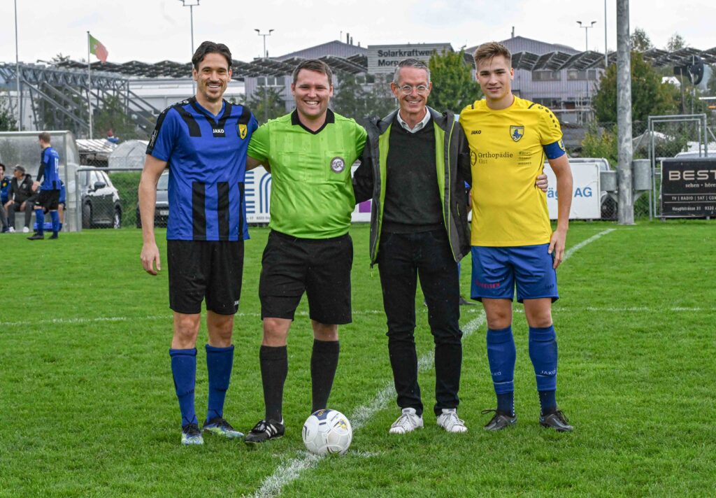 Der Blick zurück auf die vergangenen Stunden zeigt auf einen erlebnisreichen Fussballtag. Im Anschluss an das Gespräch mit Cédric Gasser begann um 14.30 Uhr das 2. Liga Meisterschaftsspiel FC Steinach 1 – FC Romanshorn 1 mit Anstoss durch Gemeindepräsident Michael Aebisegger, dem Matchballspender. Vor dem Anpfiff meinte Wolfi Steiger zu einem Sieg: „Das wär natürlich das Pünktchen auf dem i nach einem solchen Tag“. Sein Wunsch sollte in Erfüllung gehen. Nach dem frühen Tor von Romanshorn in der zweiten Minute gelang Yannik Bruderer in der 30. Minute mit Penalty der Ausgleich und in der 90. Minute konnte Jérome Eberle mit dem 2:1 den Sieg retten. Momentan platziert sich der FC Steinach auf Rang 4 mit 9 Punkten. Diesem Sieg ist noch beizufügen, dass unter den Zuschauern der FC St.Gallen-Trainer Peter Zeidler weilte.  (Text und Bilder: Fritz Heinze)