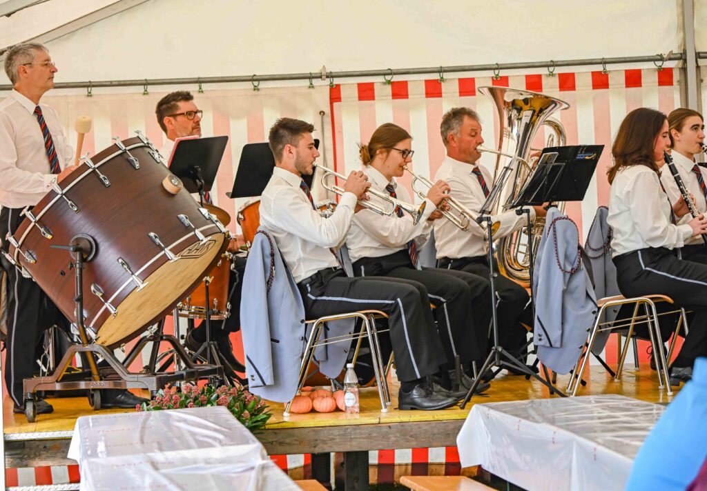 Mit diesem offiziellen Schritt wurde der Kunstrasenplatz eingeweiht. Und gleichzeitig das kleine Jubiläum zum 60jährigen Bestehen des FC Steinach gefeiert. Zwar wurden die Festlichkeiten von Petrus fast im Regen stehen gelassen, doch OK sei Dank, die Vorbereitungen für den Anlass beinhalteten auch ein Zelt. So konnte gleich vom Beginn des Festes in aller Ruhe und mit vollem Genuss dem Frühschoppenkonzert der Musikgesellschaft Steinach unter der Leitung von Dominic Inauen gelauscht werden.