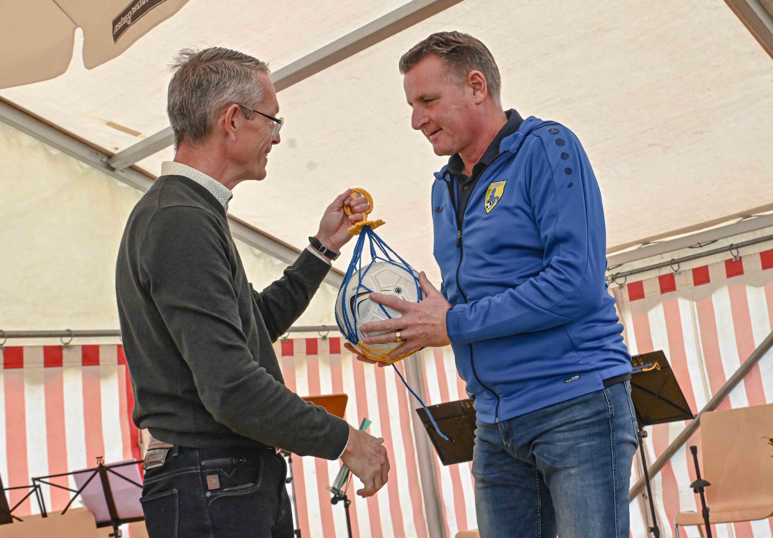 Mit der Anzahl der Ansprachen übte das OK vornehme Zurückhaltung. Doch jene, die gehalten wurde, boten Wissenswertes und ordneten auch ein. OK-Präsident und Speaker Ueli Nägeli warf mit den Aussagen von Wisi Purschke zuerst einen kurzen Blick in die Vergangenheit. Mit Wisi war der letzte Akteur der Gründerzeit am Tisch und er konnte auch einige Aussagen zur damaligen Zeit machen. So sind ihm die Aussagen des damaligen Gemeindeammann Paul Herzog geblieben, der für den Bau des Fussballplatzes gar nichts übrig hatte und auch gegen die Gründung des FC war und diesen als überflüssig wertete. Auch die Mannschaftstrainer wurden von den Spielern selbst finanziert. Nun, die Zeiten haben sich geändert. Der FC Steinach ist inzwischen zum grössten Verein des Dorfes geworden. Diese Tatsache würdigte auch Gemeindepräsident Michael Aebisegger in seiner Ansprache. Er erwähnte die Jugendarbeit sowie auch den Umstand, dass der FC mittlerweile für Steinach und für die Gesellschaft von erheblicher Wichtigkeit sei. Und die eventuellen Rivalitäten unter den Menschen sollten auf dem Sportplatz ausgefochten werden und nicht auf der Strasse.