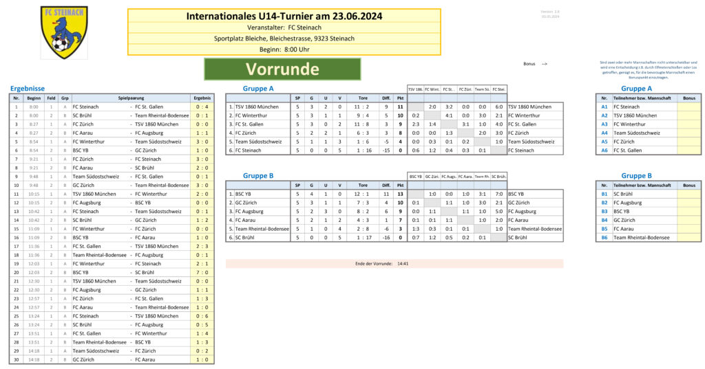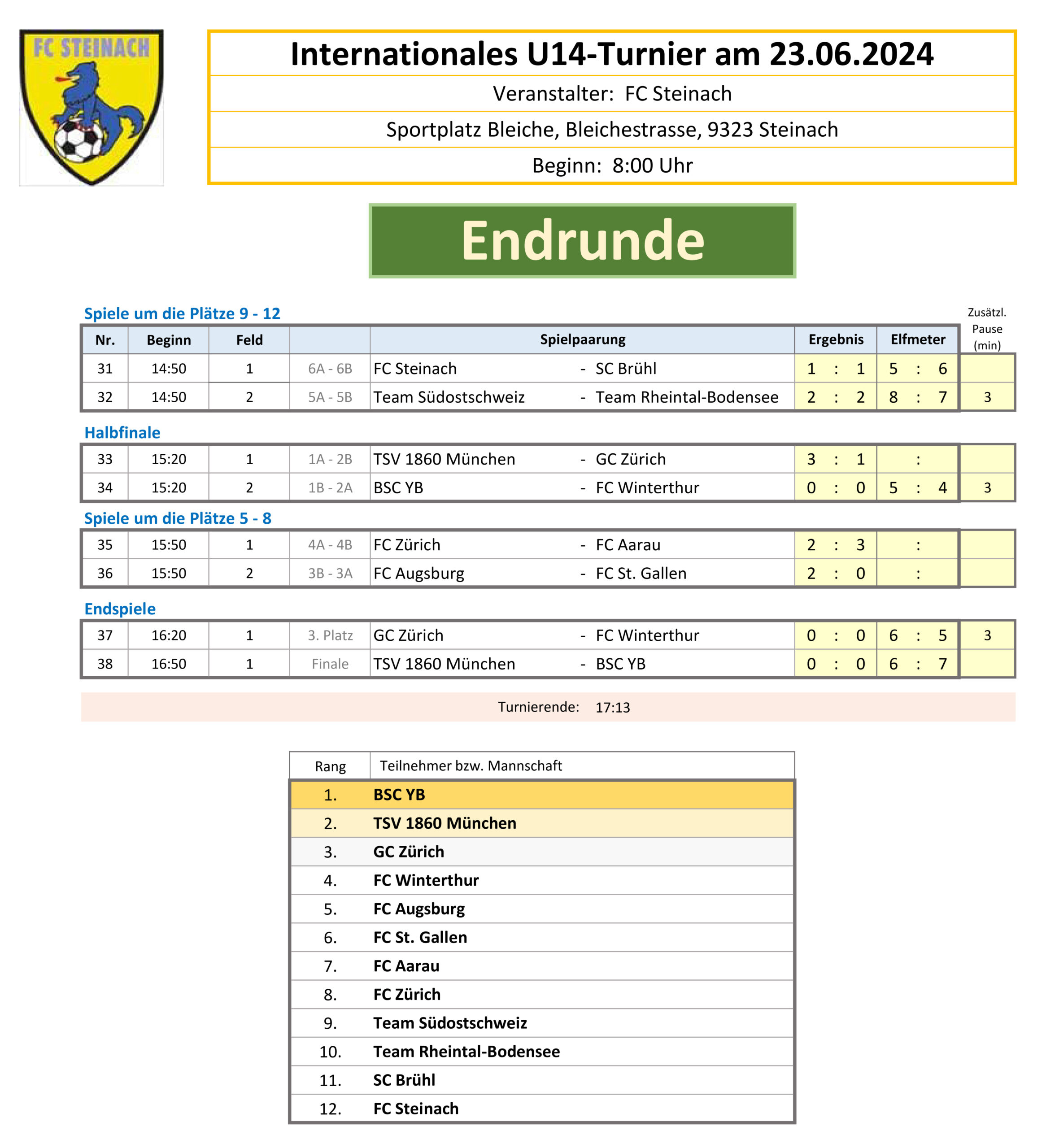 Die talentierten Nachwuchsfussballer der U12 am Samstag und der U14 am Sonntag haben fast unermüdlich gespielt und gefightet, bis die Sieger feststanden. Nachfolgend die Ranglisten und Resultate: