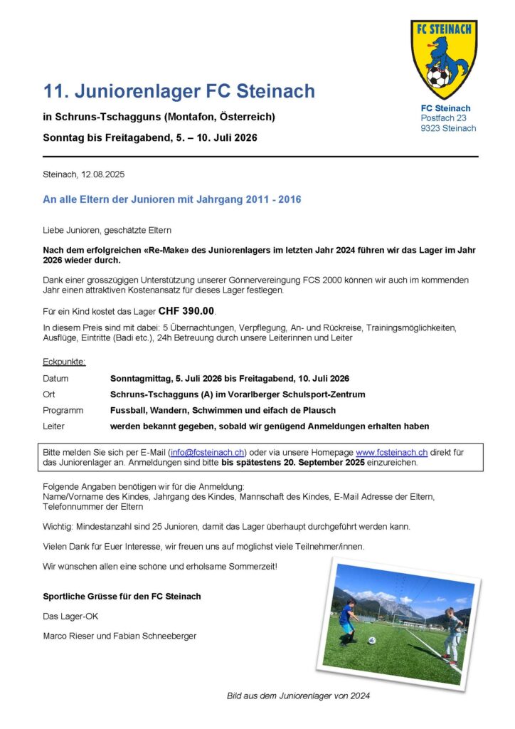 Vor- und Nachname des Kindes Jahrgang des Kindes Mannschaft des Kindes E-Mailadresse der Eltern Telefonnummer 1 der Eltern Telefonnummer 2 der Eltern