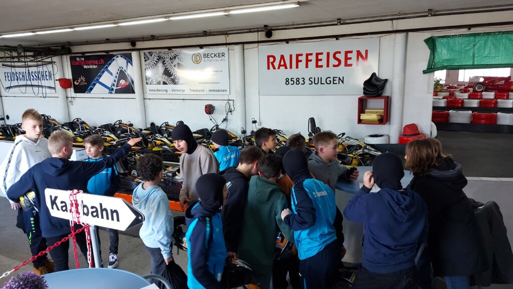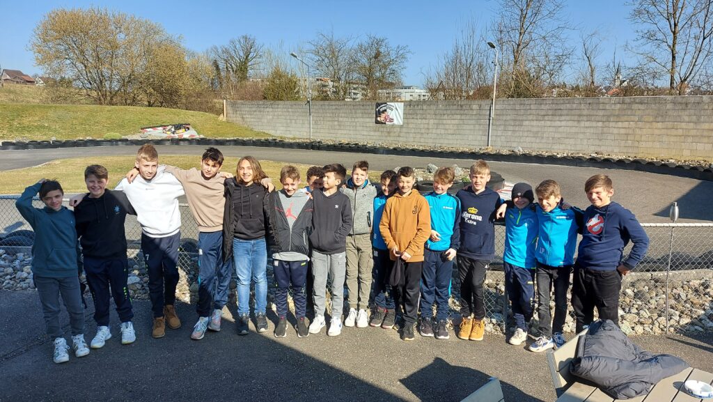Heute Morgen sind alle sehr früh aufgestanden und haben sich auf der Sportanlage Bleiche getroffen. Als alle Taschen im Car verstaut waren ging es los. Auf der Car Fahrt haben sich allen schon gefreut auf das Vorbereitungsturnier und vor allem auf das Gokart fahren. Wir sind mit zwei starken Spielen in das Turnier eingestiegen. Im dritten Spiel schien es, als würden wir unterlegen sein. Doch als wir den ersten Eckball hatten, machte Yven ein sensationelles Tor per Fallrückzieher. Ab diesem Zeitpunkt ging es bergauf. Im vierten Spiel machte Leon einen Distanzschuss in den Winkel. Im Letzen Spiel haben wir stark nachgelassen, aber dennoch glücklich gewonnen. Das Gokart fahren war sehr lustig und hat Spass gemacht. Jeffrey und Tomi hatten leider schnellere Karts und haben uns deswegen immer überrundet. Trotz all den Crashs die ein paar hatten, hat es sehr viel Spass gemacht. Zum Schluss haben wir alle noch gemeinsam was getrunken und unsere Erfahrungen vom Rennen ausgetauscht.